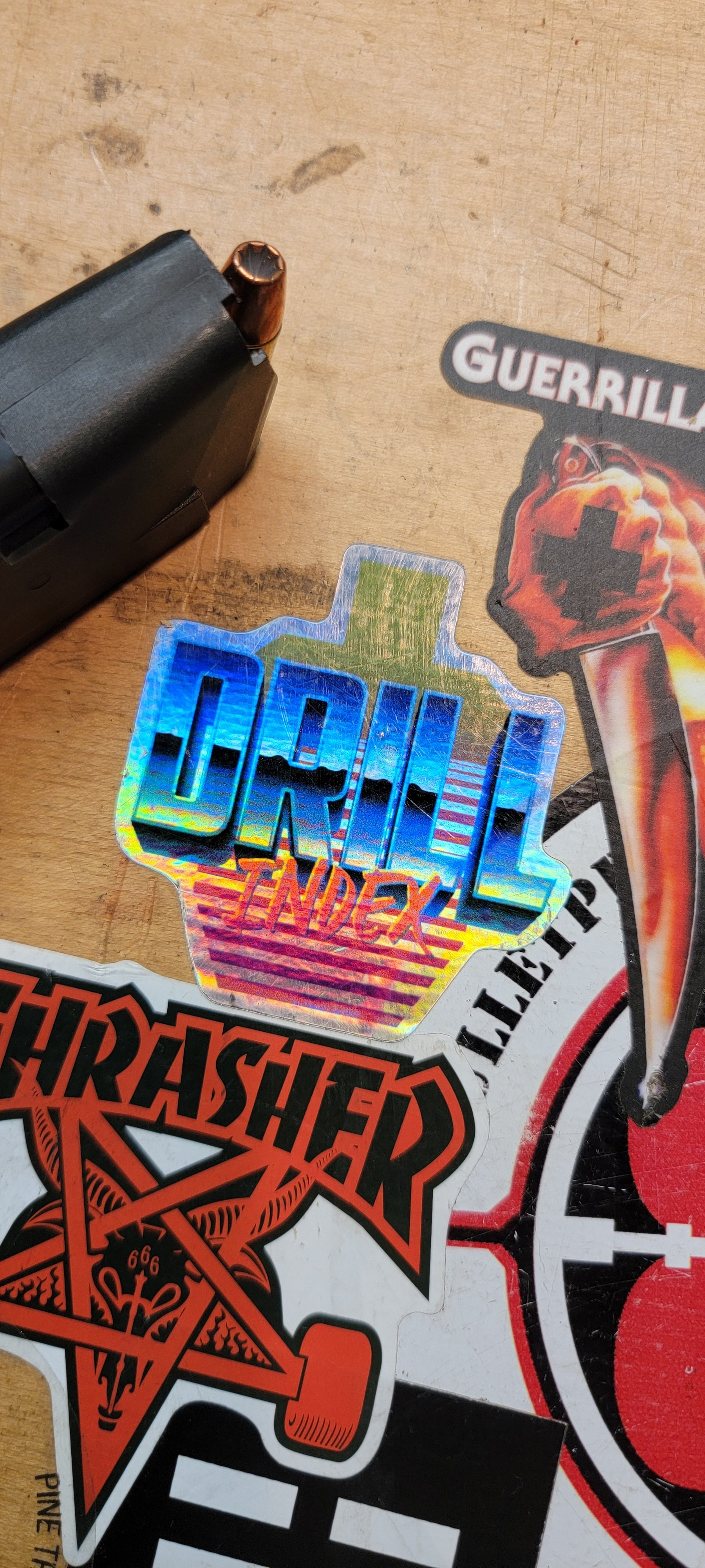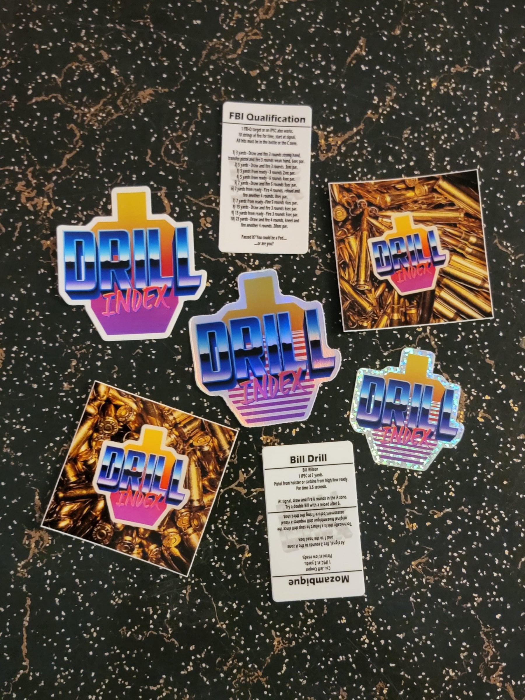 The Original Drill Index cards are printed on standard playing card stock which is essentially an adhesive core covered with varnished paper. Varnishing keeps the cards from getting dirty and provides a smooth, slightly slippery surface to aid in handling. They are not water resistant.